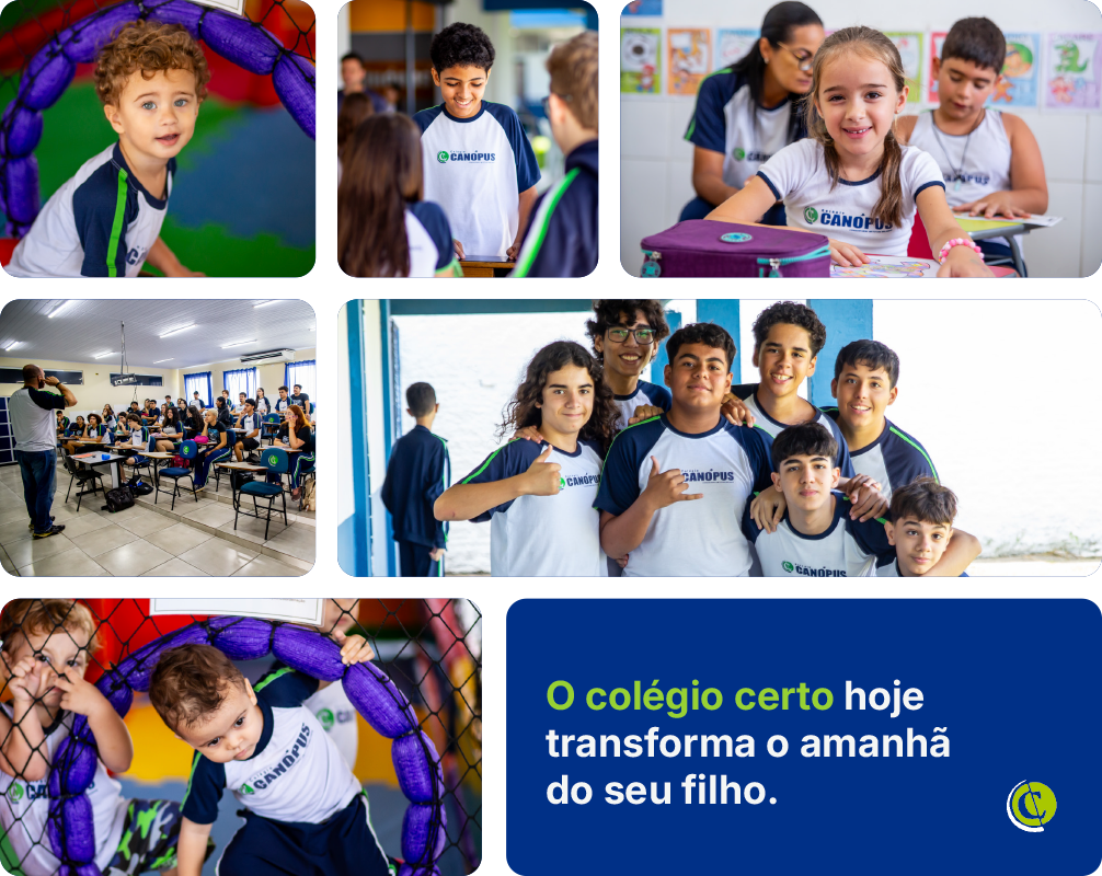 Do Berçário ao Ensino Médio, o Colégio Canópus oferece uma formação completa, com estrutura diferenciada, corpo docente qualificado e uma educação que vai além da sala de aula.