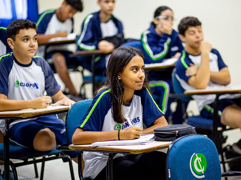 No Ensino Médio, os alunos recebem preparação acadêmica intensiva para vestibulares e ENEM, desenvolvendo pensamento crítico, autonomia, habilidades socioemocionais e orientação para escolhas futuras.